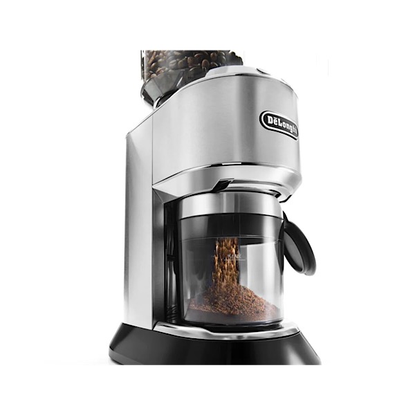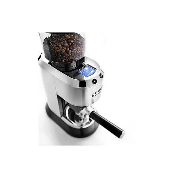 آسیاب قهوه «دلونگی» (DeLonghi) مدل KG521 با طراحی خاص و جذاب دارای نشانگر دیجیتال ، بدنه ای از جنس استیل ضدزنگ دارد. 18 حالت تنظیم اندازه دانه بندی در نظر گرفته شده بر حسب دلخواه شما دانه های قهوه را برای اسپرسو، دستگاه قهوه ساز یا فرنچ پرس آسیاب می کند. مخزن نسبتا بزرگ بالایی گنجایش 350 گرم دانه قهوه را داراست. تیغه های استیل ضدزنگ دستگاه می توانند در هر بار استفاده میزان مورد نیاز برای 1 تا 14 فنجان قهوه را آسیاب کنند که این تنظیمات از طریق پیچ ولوم کناری امکان پذیر است. همچنین یک ظرف زیبا برای نگهداری 170 گرم (14 فنجان) قهوه آسیاب شده در نظر گرقته شده است. تیغه های دستگاه قابل جابجایی هستند که کار تمیزکاری را بسیار ساده و آسان می کند. این دستگاه زیبا و قدرتمند با گنجایش و بازده بالا، علاوه بر منزل قابل به کارگیری در کافی شاپ ها و رستوران ها و محیط های اداری است.
