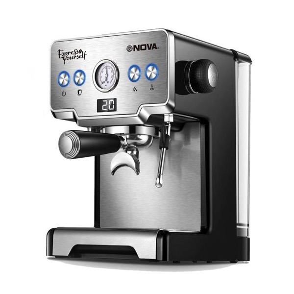 اسپرسوساز نوا 128 مدل Nova NCM-128EXPS با قدرت بخار 15 بار توان مصرفی 1450 وات و نشانگر درجه فشار بخار عقربه ای یک قهوه ساز و اسپرسو ساز نیمه صنعتی و بسیار قوی محسوب میشود. اسپرسوساز نوا 128 دارای ظرفیت مخزن آب برابر با 1.7 لیتر و مجهز به سیستم گرمایی ترموبلاک است. این مدل امکانات متنوع و بسیار کاربردی را در اختیار کاربر قرار داده و میتواند گزینه ای مناسب برای کافیشاپ های کوچک باشد.