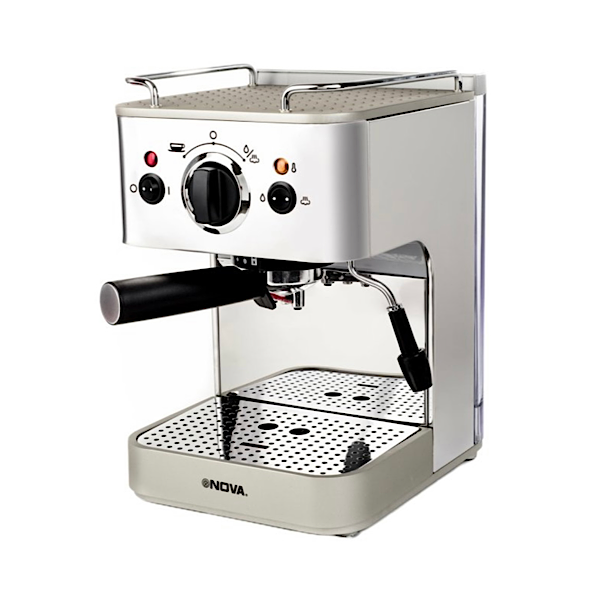 149 NOVA با طراحی عالی یک دستگاه پر قدرت و کاملاً کاربردی برای مصارف خانگی و یا کافه های کوچک است. اسپرسو ساز نوا 149 با قدرت بخار 15 بار و اجزا داخلی و لوله های بخار از فولاد ضد زنگ و قدرت 1250 وات می باشد که یک قهوه ساز و اسپرسوساز قوی محسوب می شود. اسپرسو خارج شده از این دستگاه با گرمای عالی نشان دهنده ی قدرت بسیار خوب نوا 149 است. نوا 149 مجهز به نازل تولید بخار و آب جوش است که از آن برای تهیه کاپوچینو و کف شیر و انواع نوشیدنیهای گرم استفاده میشود. در مدل نوا 149 نازل بخار قابل چرخش طراحی شده است که استفاده از آن را ساده کرده است. همچنین نوا 149 مجهز به صفحه ی گرم نگهداره ی فنجان بزرگتری نسبت به نوا 139 است که به شما کمک میکند تعداد بیشتری فنجان قهوه را پیش گرم کنید و از نوشیدن یک فنجان اسپرسو خوب لذت ببرید. بدنه نوا 149 از استیل براق ضد زنگ ساخته شده که زیبایی آن را دو چندان کرده است. در این دستگاه از بویلر و پمپ آب قویتری نسبت به مدل های 139 و 140 استفاده شده است که بر روی درجه حرارت قهوه خروجی و همچنین بخار آب تاثیر گذار است. نوا 149 نیز مانند نوا 139 و 140 دارای دو فیلتر قهوه تک و دوبل است که شما میتوانید از آنها استفاده نمایید.