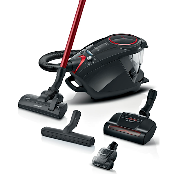 جاروبرقی بوش BGS7POW1 رنگ مشکی یکی از جاروبرقی های 2020 و سری 8 بوش است. این جاروبرقی ممکن است در بازار با عنوان جاروبرقی بوش 7POW1 یا BGS7 و یا حتی GS7 نیز شناخته شود که البته مدل کامل محصول پیش روی شما نیست. محصول پیش روی شما جزو جاروبرقی های بوش ProPower است که با مدل کامل BGS7POW1/03 و مونتاژ لهستان وارد کشور می شود. این جاروبرقی دارای ظرفیت 3 لیتر است و شعاع عملکرد 10 متر دارد که باعث می شود یک گزینه مناسب برای استفاده روزمره و خانگی باشد. این جاروبرقی دارای حداکثر توان یا قدرت 800 وات می باشد. البته جاروبرقی 800 وات بوش BGS7POW1 قابلیت تنظیم قدرت دارد و شما با استفاده از دکمه چرخشی که روی بدنه محصول قرار دارد، این کار را انجام دهید. جاروبرقی پیش روی شما به موتور آلمانی با کیفیت و خوش ساخت بوش مجهز می باشد. بوش عملکرد صحیح و عمر موتور این محصول را تا 10 سال تضمین نموده تا خیال شما از این بابت راحت باشد. این جاروبرقی دارای سیستم QuattroPower است که باعث می شود با صرف کمترین انرژی، بیشترین بازدهی ممکن را داشته باشد. جاروبرقی فوق دارای تکنولوژی Automatic Air Cycle نیز می باشد که ذرات ریز و درشت گرد و غبار را توسط نیروی گریز از مرکز جدا می کند. این تکنولوژی در کنار موتور قدرتمند بوش، طراحی داخلی بی نقض جاروبرقی و سنسور هایی که این محصول دارد، استفاده از حداکثر قدرت مکش را تضمین می کند. این جاروبرقی تکنولوژی SensorBagless دارد که در کنار سیستم SmartSensor Control، بطور لحظه ای میزان جریان ورودی هوا را اندازه گیری می کند تا مطمئن شود از حداکثر قدرت مکش بهره می برید. سیستم مذکور این قابلیت را دارد تا تشخیص دهد فیلتر چه زمانی نیاز به نظافت دارند و این موضوع را توسط چراغ ال ای دی به شما اطلاع می دهد. جاروبرقی بوش ProPower BGS 7POW1 مجهز به فیلتر های مخصوص است که داخل قسمت مخزن قرار دارند. این جاروبرقی دارای سیستم نظافت خودکار یا SelfClean است و در صورتی که تشخیص دهد فیلتر های داخل مخزن کثیف شده اند، بطور خودکار آن ها را توسط سیستم لرزش یا ویبره ای که دارد تمیز می کند. البته این کار می تواند توسط دکمه مخصوصی که روی جاروبرقی قرار دارد نیز انجام شود. با وجود این سیستم هر بار نیاز نیست فیلتر های مخزن را بشویید یا تمیز کنید. به گفته بوش این جاروبرقی دارای فیلتر HEPA است و می تواند مانع خروج ذرات آلرژی زا از جاروبرقی شود. جاروبرقی 3 لیتر بوش BGS7POW1 دارای نازل های متعددی است که می توانید از آن ها برای نظافت انواع سطوح استفاده کنید. نازل اصلی این جاروبرقی دارای 2 حالت است و می توانید از آن برای نظافت فرش، موکت و یا حتی سطوح سخت استفاده کنید. البته به همراه جاروبرقی مذکور 1 نازل مخصوص سطوح سخت یا Hard Floor Nozzle نیز ارائه می شود که برای نظافت انواع سطوح سخت طراحی شده است. این محصول دارای نازل 3 کاره (3-in-1) است که شامل نازل مخصوص درز و شکاف، نازل مبلمان و همچنین نازل گرد و غبار می باشد. این نازل ها بصورد جداگانه قابل استفاده می باشند و شما می توانید بسته به نیاز خود از آن ها استفاده کنید. نازل سه کاره این جاروبرقی روی دسته جاروبرقی نگهداری می شوند و به راحتی در دسترس هستند. به همراه محصول فوق، 2 نازل حرفه ای مخصوص جمع آوری پرز و مو ارائه می شود که معمولا در جاروبرقی های مخصوص حیوانات بوش می شوند. جاروبرقی مذکور دارای نازل Turbo Brush حرفه ای است که به برس گردان مجهز می باشد و مخصوص جمع آوری پرز و مو از فرش طراحی شده است. این نازل قابلیت نظافت خودکار (Self-Clean) دارد و تنها با فشار یک دکمه، پرز و مویی که روی برس گردان جمع شده اند، جدا می شوند و شما به راحتی می توانید این نازل را تمیز کنید. علاوه بر این، نازل Mini AirTurbo نیز به همراه جاروبرقی مذکور ارائه می شود. این نازل به برس گردان مجهز می باشد که توسط فشار هوا به گردش در می آید و برای جمع آوری پرز و مو از روی مبلمان بسیار مناسب است. جاروبرقی مخزن دار بوش BGS7POW1 رنگ مشکی به گونه ای طراحی شده تا علاوه بر زیبایی، کارایی بهتری نیز داشته باشد. این جاروبرقی دارای سیستم EasyClean است و م