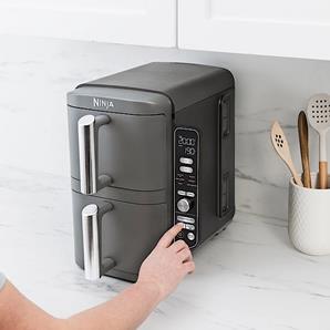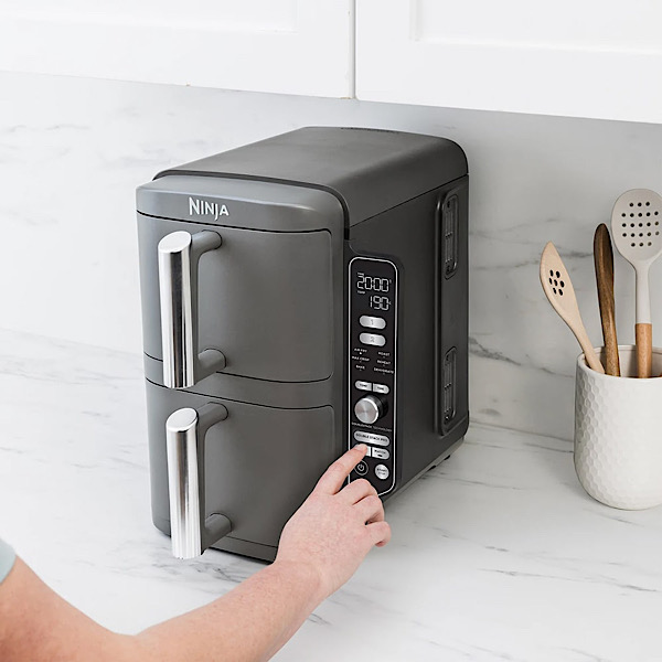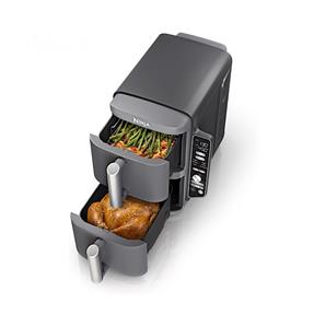 سرخ کن هواپز دوقلو نینجا مدل sl400 دستگاه پخت و پز بدون روغن کمپانی ninja امریکا در سال 2024 میباشد. این محصول با موتور قدرتمند 2470W عملکرد سریع و فوق العادهای از پخت و پز را رقم میزند تا مواد غذایی با سرعت 1/5 برابری نسبت به سایر فرهای برقی طبخ شوند. همچنین نوع خاص طراحی هواپز بصورت دوطبقه، باعث شده تا توجه بسیاری از افراد را به سمت خود جلب کند و همچنین فضای نسبتا کمتری را در آشپزخانه اشغال کند. وجود 6 برنامه پیش فرض برای پخت حداکثری با دمای 240 درجه، پخت ترد شده و سرخ کن، حالت گرم کردن مجدد، میوه خشک کن، پخت کبابی و بریان، پخت کیک و غذا، از جمله برنامههای پیش فرض پخت با سرخ کن دوطبقه نینجا میباشد. ظرفیت 9/5 لیتری این هواپز شرایط را برای پخت در خانوادههایی با جمعیت 8 نفر نیز فراهم کرده تا بتوان در هنگام میهمانی و دورهمی نیز از دستگاه استفاده کرد و پخت و پز سریع را رقم زد. گنجایش هر مخزن 4.75 لیتر بوده و باتوجه به وجود سینی فلزی در هر مخزن، امکان پخت همزمان 4 نوع مواد غذایی با 2 شرایط دما و زمان وجود دارد. برخلاف اکثریت سرخ کن های برند نینجا که فضای جایگذاری مخزن آنها از پلاستیک ضد حرارت طراحی شده، در این قسمت ninja sl400eu از ورق گالوانیزه استفاده شده که به عقیده برخی افراد باعث چرخش هوای بهتر و در نتیجه بهبود کیفیت پخت خواهد شد. همچون انواع سرخ کن بدون روغن نینجا دوقلو این دستگاه نیز از 6 عملکرد ثابت پخت خودکار برخوردار است. همچنین وجود قابلیت match برای یکی کردن شرایط پخت مخازن و دکمه sync برای پخت متفاوت در هر مخزن، امکانات کامل و کاربری حرفهای هواپز را نشان میدهد. قابلیت double stack pro نیز برای مواقعی استفاده میشود که قصد دارید در یک مخزن دو نوع مواد غذایی را پخت کنید. بطورکلی با این محصول میتوان در هر بار پخت 4 نوع غذای مختلف را آماده کرد. در ادامه کاربرد 6 برنامه پخت خودکار این دستگاه را معرفی میکنیم.